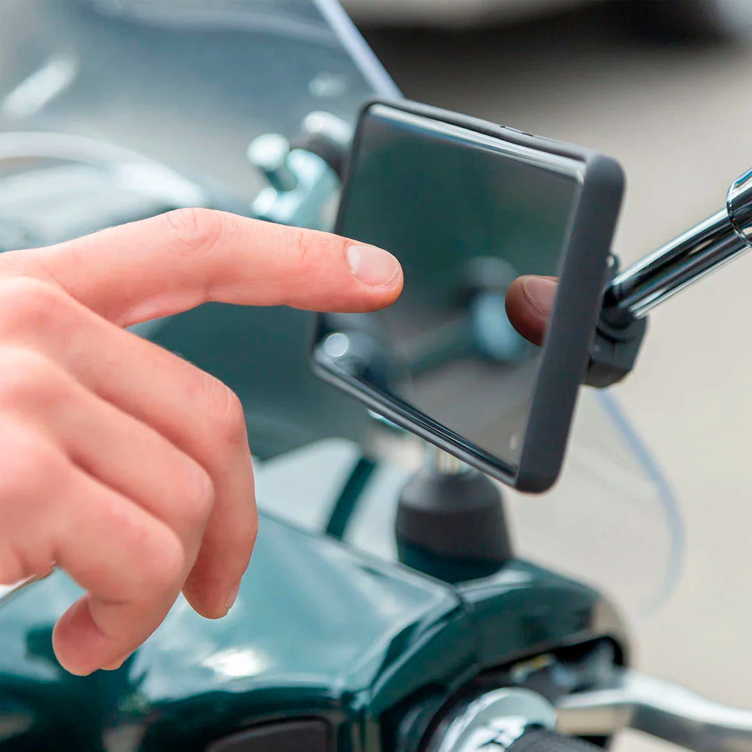 El MIRROR MOUNT PRO de SP ConnectTM le permite montar su smartphone en su motocicleta en segundos, incluso si no se puede acceder al manillar. También tiene una cabeza rotatoria para que su teléfono siempre esté perfectamente ubicado. Simplemente atornille el MIRROR MOUNT PRO a la varilla del espejo de su motocicleta y estará listo para montar...