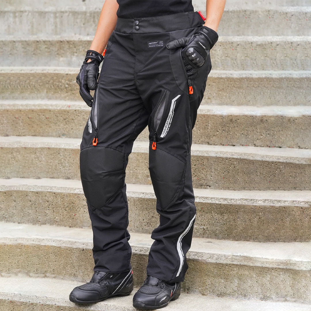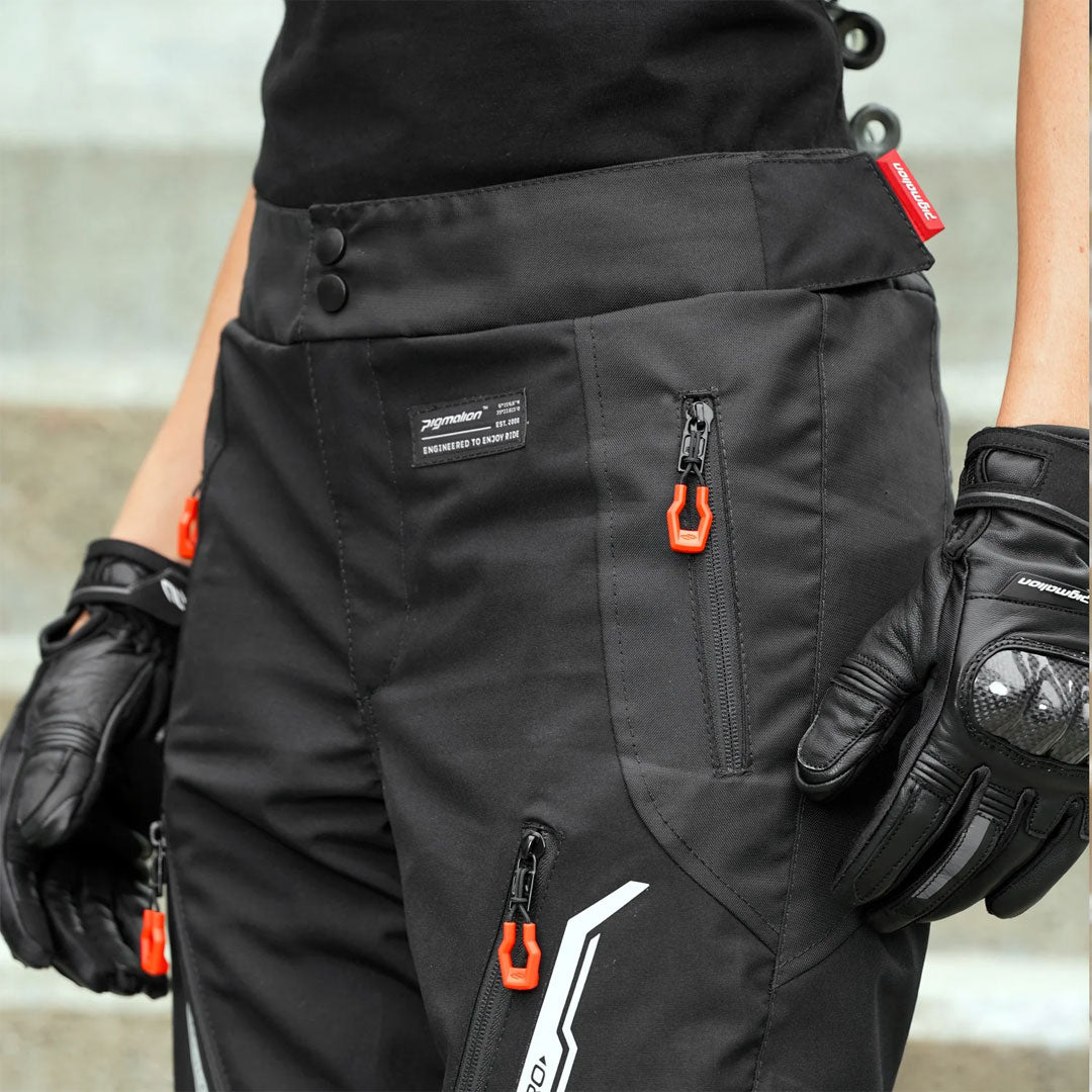 Experimenta el Pantalón de Protección Traveler Pro de Pigmalion Mujer, creado para motociclistas que exigen confort, seguridad y desempeño en cada recorrido. Su diseño ergonómico precurvado se ajusta al cuerpo para ofrecer una conducción cómoda, incluso en trayectos largos. Gracias a sus ventilas en las piernas, mantiene una ventilación constante que ayuda a conservar la frescura en cualquier clima. La alta visibilidad está garantizada con reflectivos frontales y traseros, mientras que su sistema ajustable de 3 posiciones de altura para la rodilla asegura que las protecciones se adapten perfectamente a tu cuerpo, sin causar incomodidades. Fabricado en lona resistente y malla de poliéster, protege rodillas y caderas, combinando durabilidad con estilo.